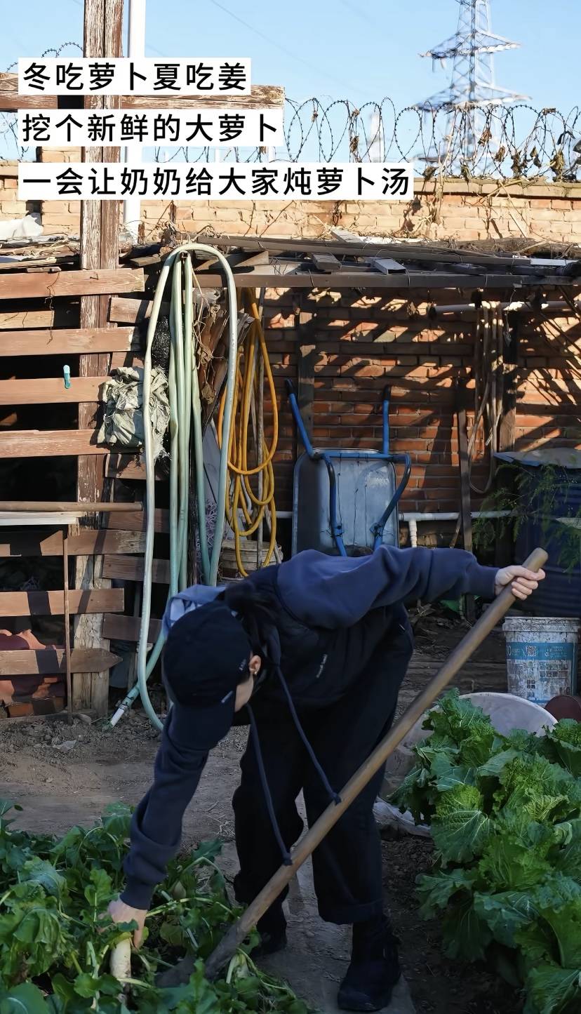 梅婷还扛着铁锨在院子里挖了萝卜,新鲜的大萝卜交给奶奶做萝卜汤。从这个角度看梅婷的豪宅小院,就像是普通的农家院子。