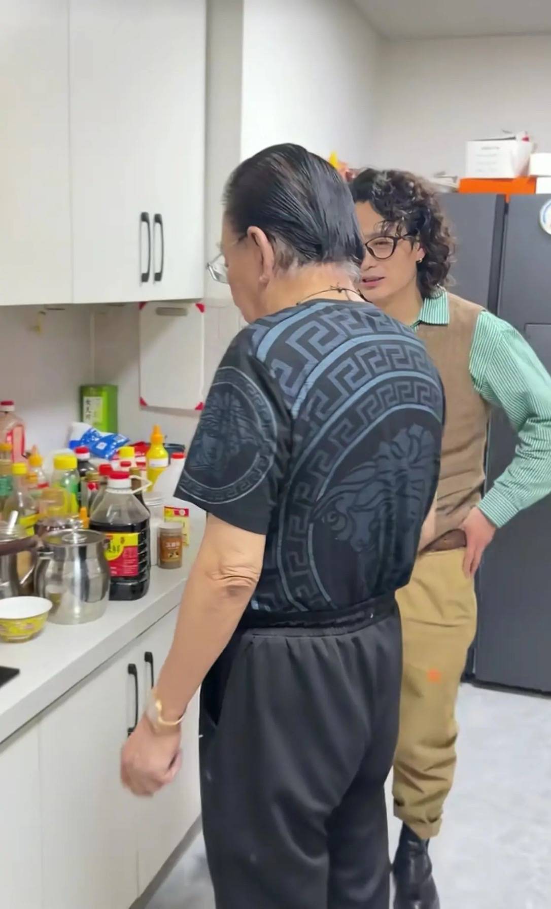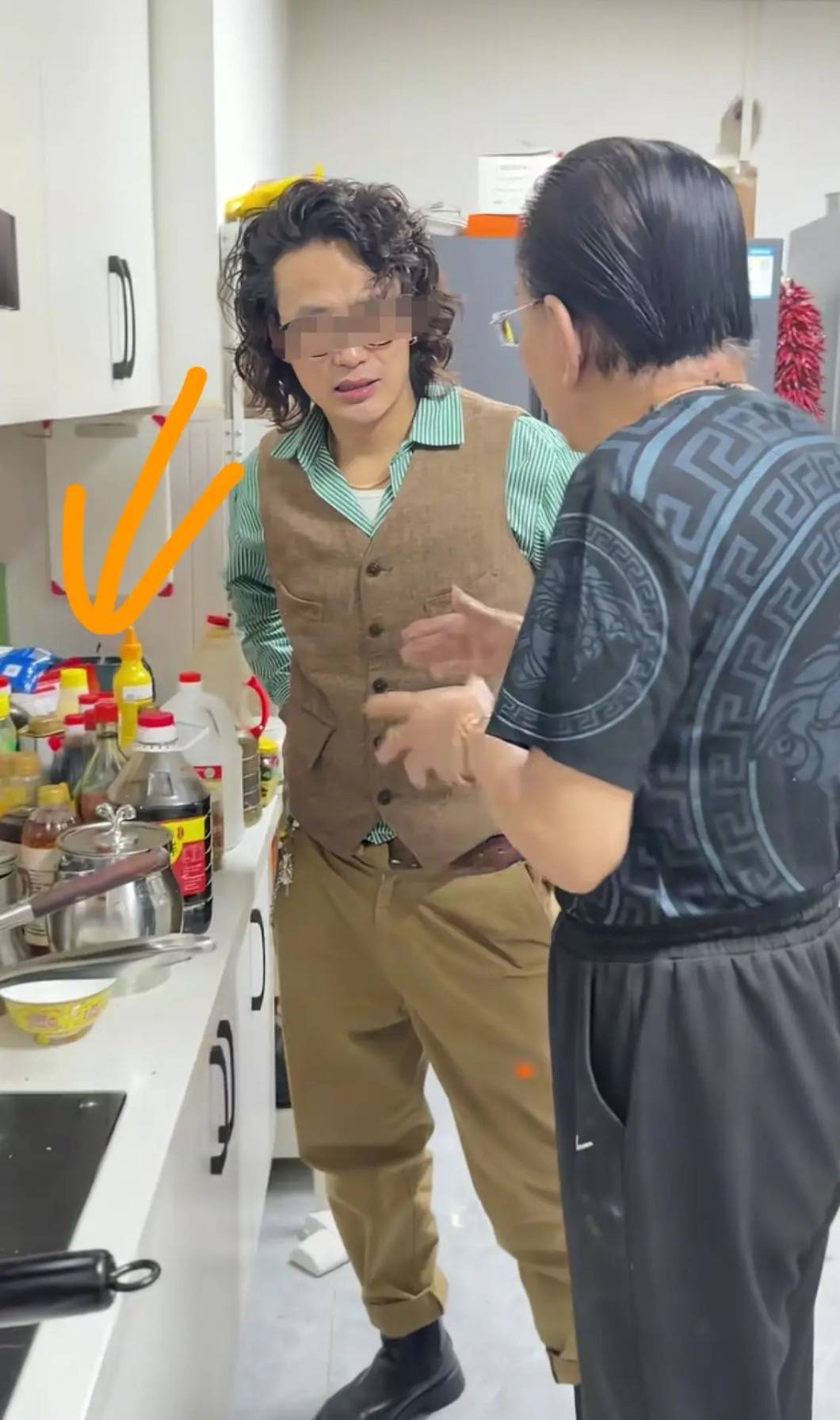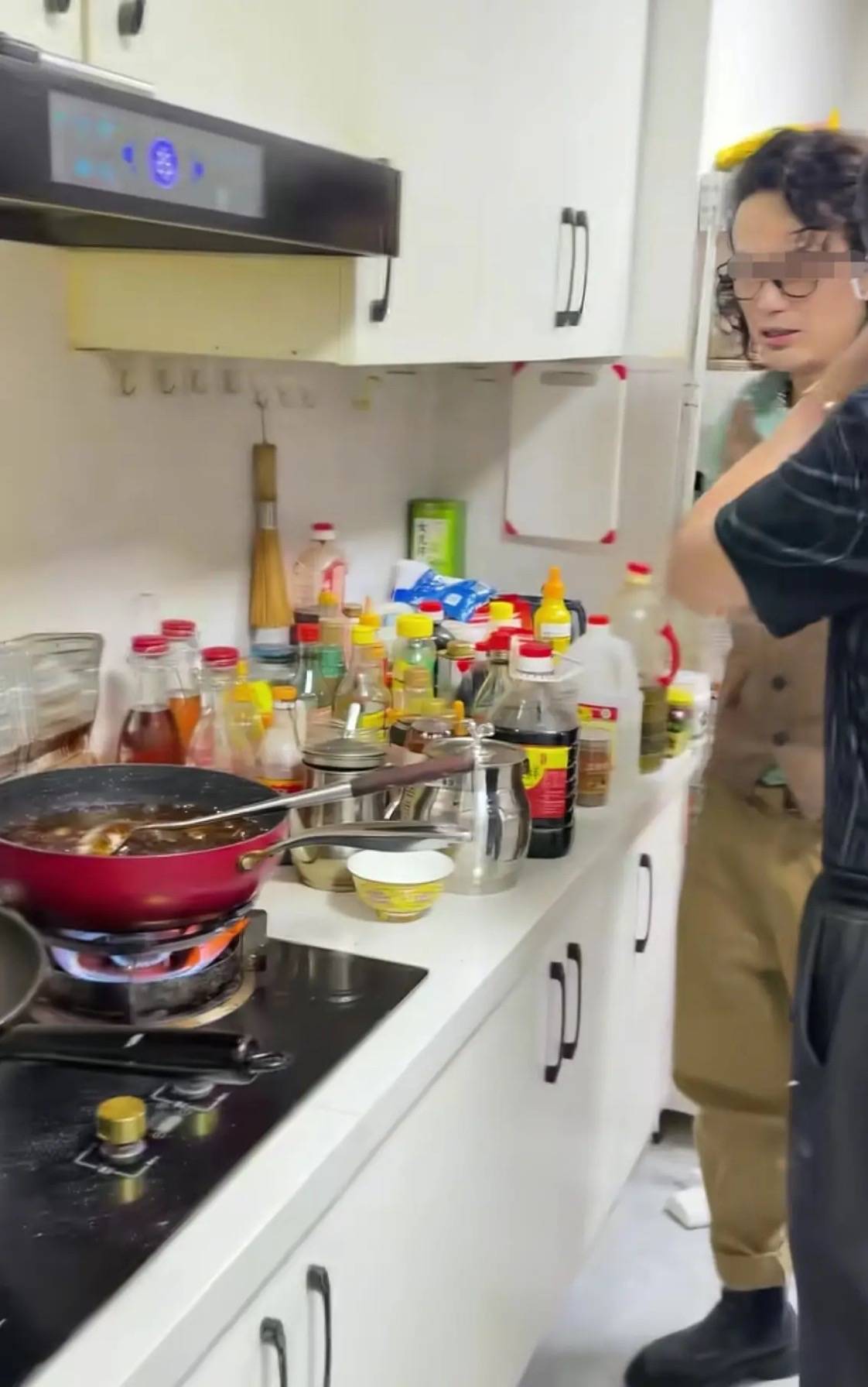 因为家里没有女主人,侯老师也没有请保姆,所以家里的环境真是一言难尽。不仅橱柜上摆满了瓶瓶罐罐,就连灶台的墙面上都满是油污。