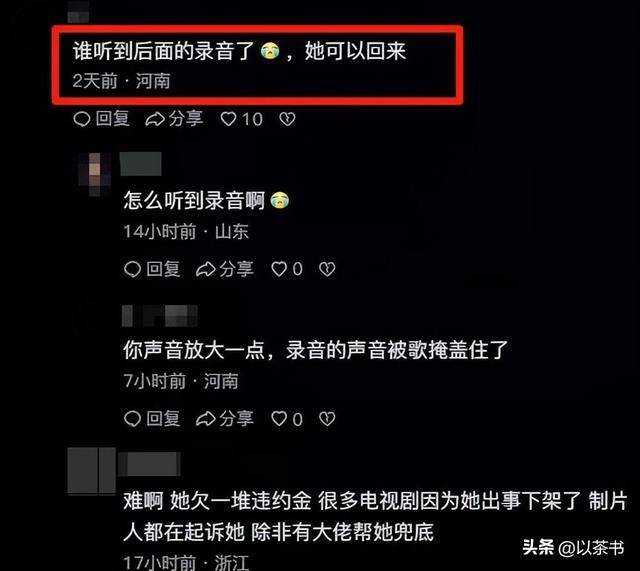 今年8月,有个账号庆祝她出道16周年,放了一段疑似她的录音,里面说“如果需要我可以回国”。
