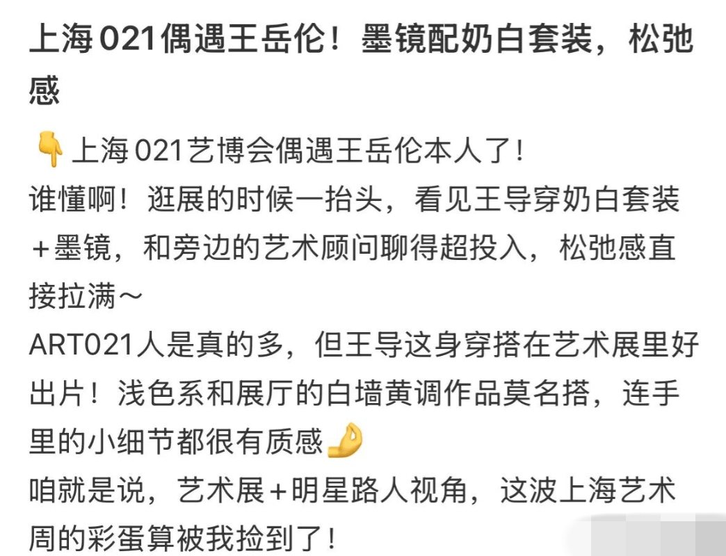 王岳伦家中本来就是书香世家,爸爸更是有名的画家,连带着女儿王诗龄画画技术也特别高超,王岳伦在画画这方面应该也是有造诣的,毕竟耳濡目染,这次带着女伴看展,艺术顾问连忙就带着做讲解,看得出来王岳伦精心打扮了一番。