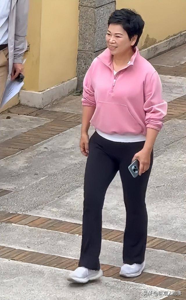 她都已经62岁了,还是穿着一身粉色运动衣搭黑裤,一头短发精神头儿十足,走路带风,脸红润得像少女,精气神比年轻人还足。