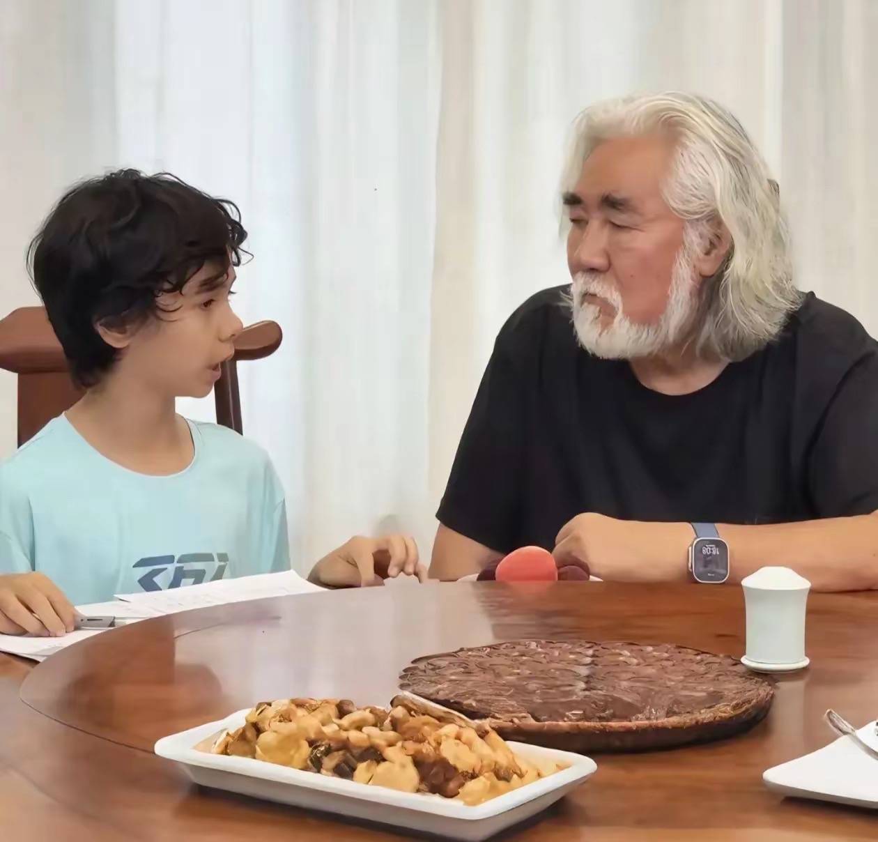 张纪中白须白发很显老,但他心里住着一个明媚的少年。所以不在乎自己的形象,而是脚踏实地的陪伴家人。