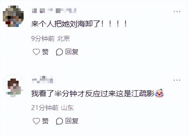 甚至还有网友调侃:“江疏影换了齐刘海差点愣是没认出来。”
