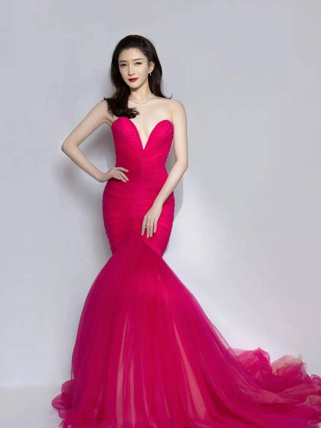 红毯上就更不用说了,2020年白玉兰奖颁奖典礼,她穿的那件玫红色鱼尾礼服,开叉到大腿根,配上她168的身高,简直是“人间尤物”。