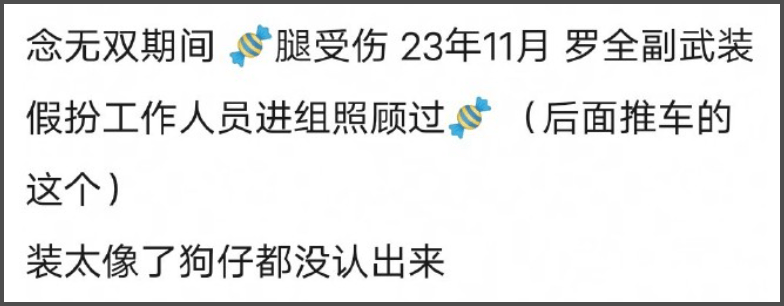 2023年唐嫣在剧组脚腕受伤,罗晋还疑似打扮成工作人员前去照顾探望,只不过行事低调,没有太张扬。