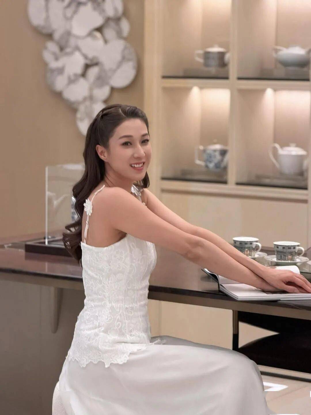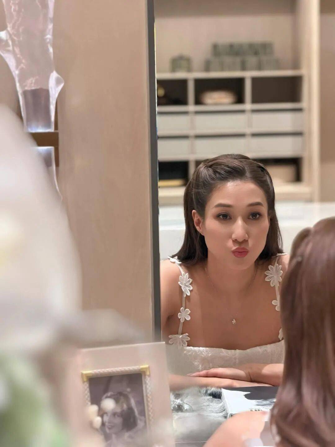 TVB前花旦钟嘉欣(Linda)近日在社交网晒出一辑照片,见她穿上一条雪白的背心裙,时而含笑捧花,时而对镜嘟嘴,少女味十足!