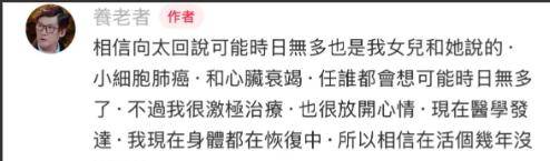 记得2024年的时候,他因为肺部问题加心脏衰竭住院一个多月,还自嘲在病房“度假”,晒窗外蓝天,说三餐有人送不用自己动手,就是出门不自由。