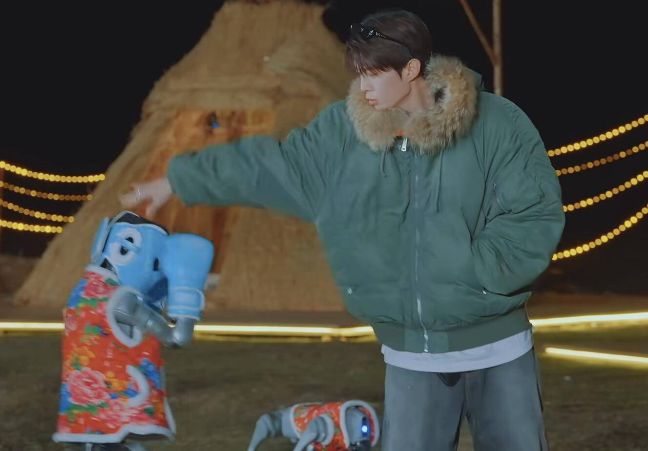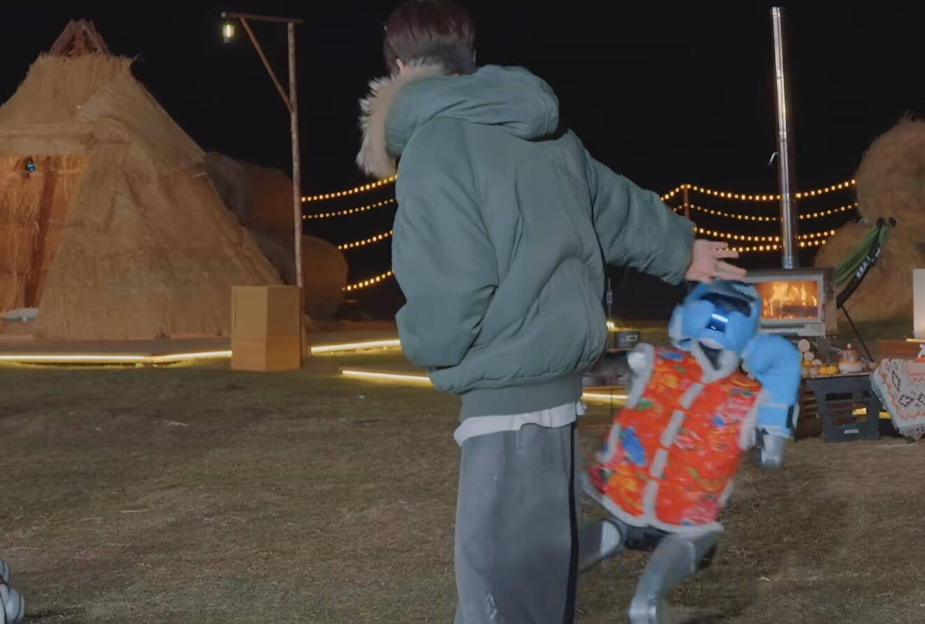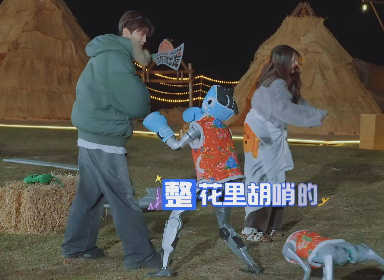 看到这样的机器人之后,黄景瑜直接从后面把机器人的脑袋掰住,这样的操作直接卡住了机器人的视角,让机器人不知道该怎么打拳,真的是要把人笑疯了。