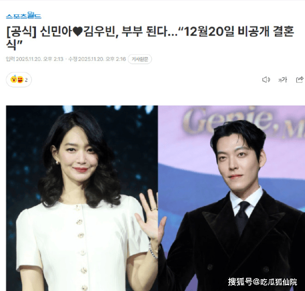 12 月 20 日,虽不能亲眼见证这场婚礼的浪漫,但粉丝们的心早已与金宇彬和申敏儿紧紧相连。相信在家人与亲友的祝福下,他们将开启幸福美满的婚姻生活,续写爱情的美好篇章。