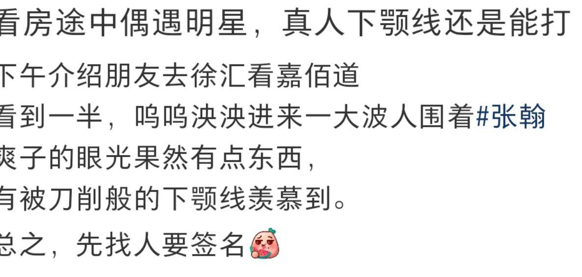 偶遇他的路人们似乎也没意识到张翰曾经的劣迹,语气还挺崇拜。