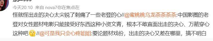 有圈内编剧下场嘲讽他,觉得他之所以会这么问,还是因为他潜意识里把自己的电影当男性电影,把自己和邵艺辉放在对立面上。