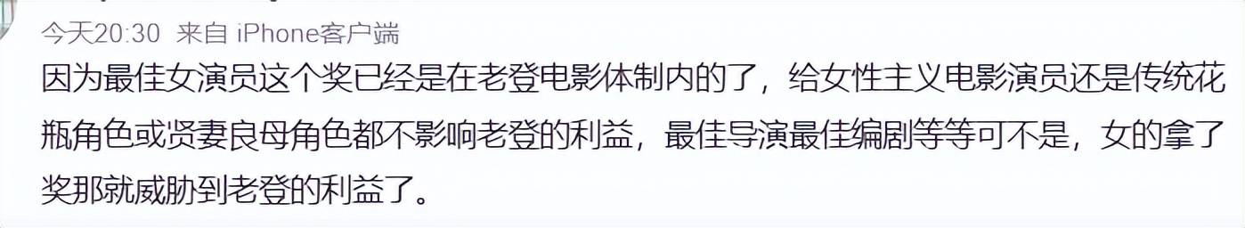 不只是这一个词的问题,最佳导演奖被陈思诚拿下,又被认为是金鸡奖男性评委抱团发力的表现。
