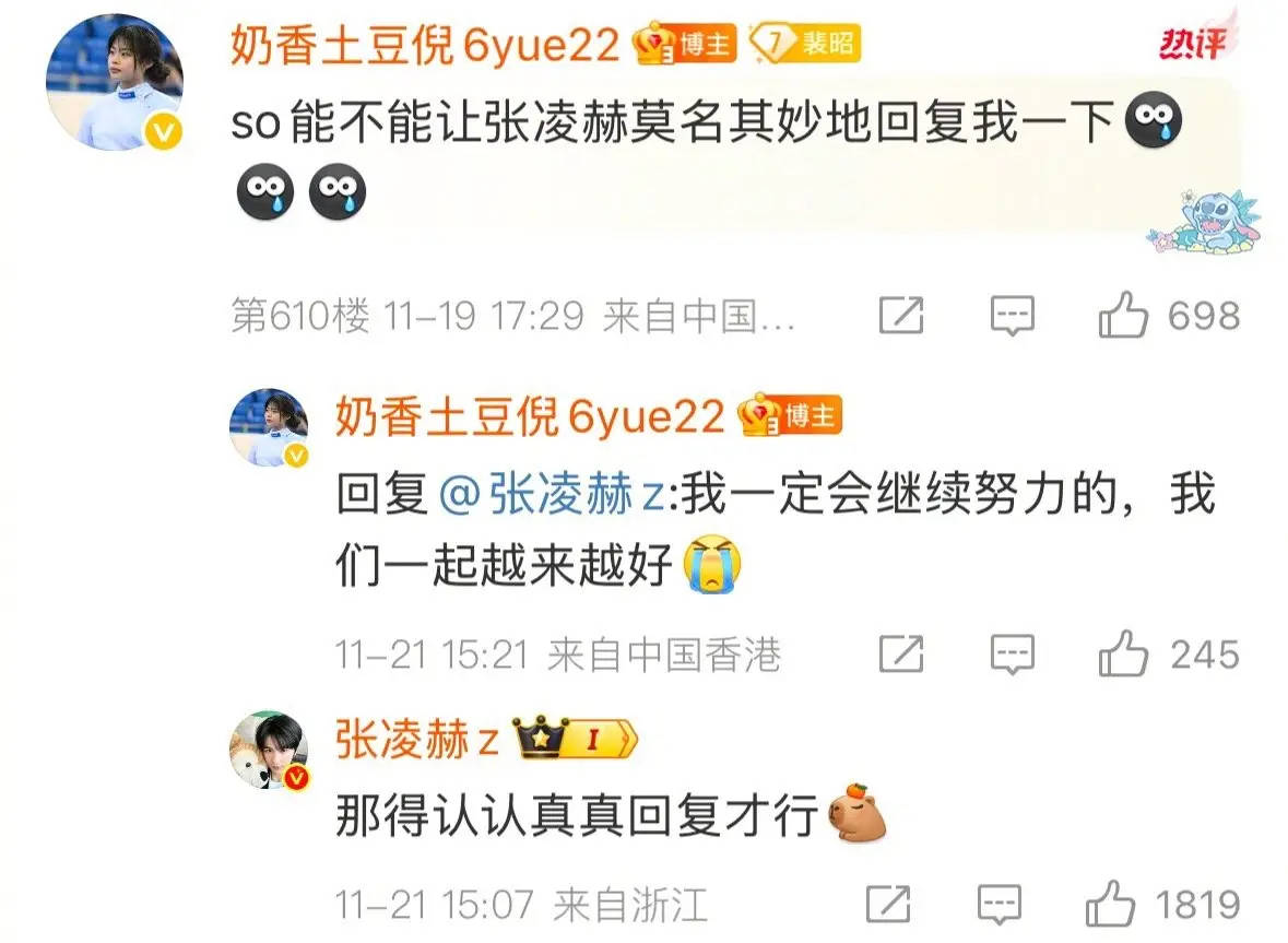 近日,中国击剑运动员倪琪瑶在社交平台发文,庆祝自己夺得第十五届全运会女子重剑团体银牌,并幽默喊话演员张凌赫:“能不能莫名其妙的回我一下”。随后,张凌赫现身评论区:“那得认认真真回复才行”,并追加留言“太厉害啦”和“牛牛牛!”据悉,倪琪瑶此次代表省队出战,实现了省队在该项目上奖牌“零的突破”。