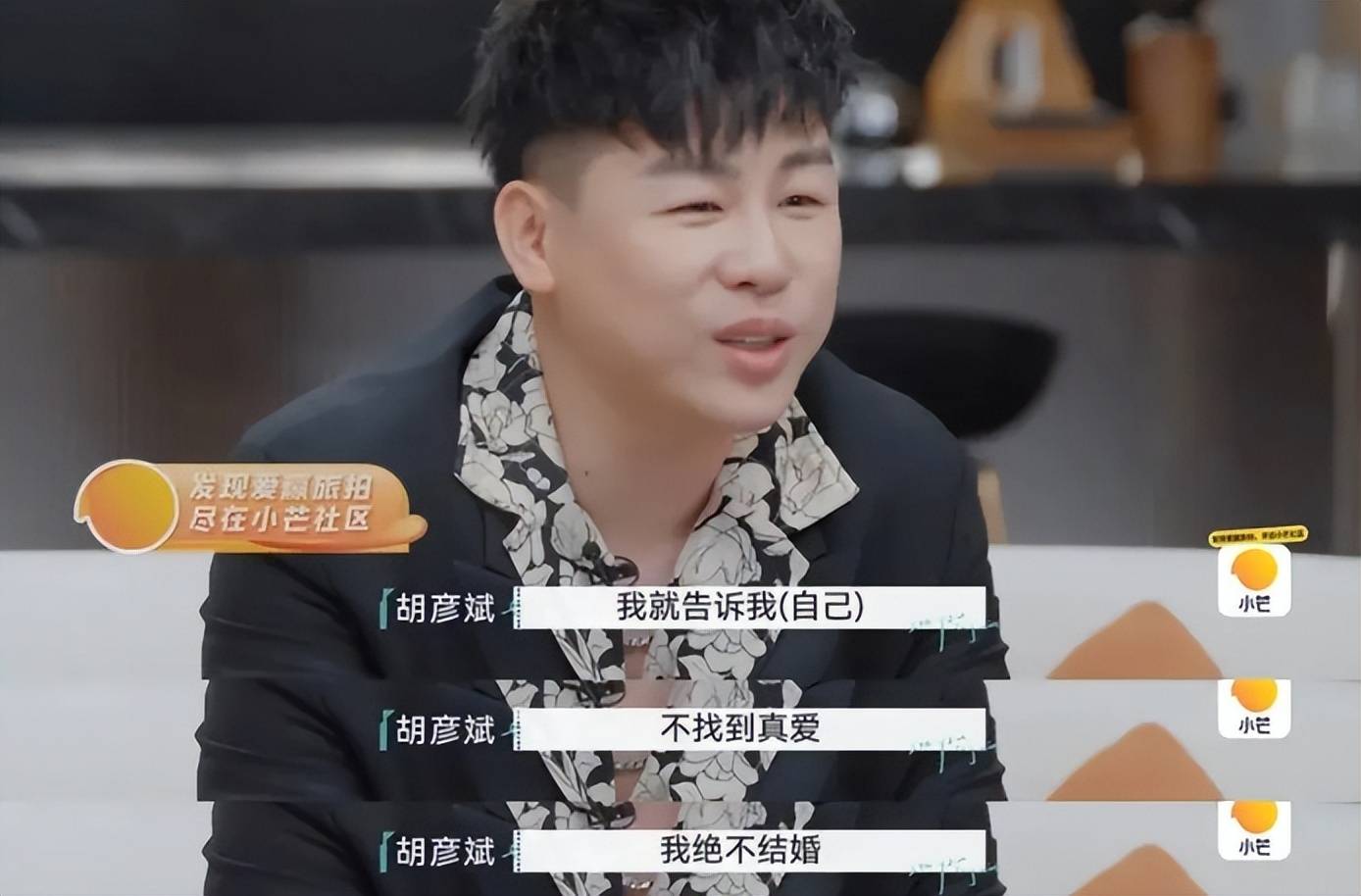 不过,正因为足够清醒,胡彦斌对待感情的态度还是很认真的,他曾在节目中表示:“我就告诉(自己),不找到真爱,我绝不结婚。”