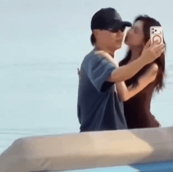 两人似乎也在用手机记录这甜蜜的时刻,情到浓时就自然而然地亲吻在一起,胡彦斌举着手机的动作都没变,生怕错过了这个瞬间。