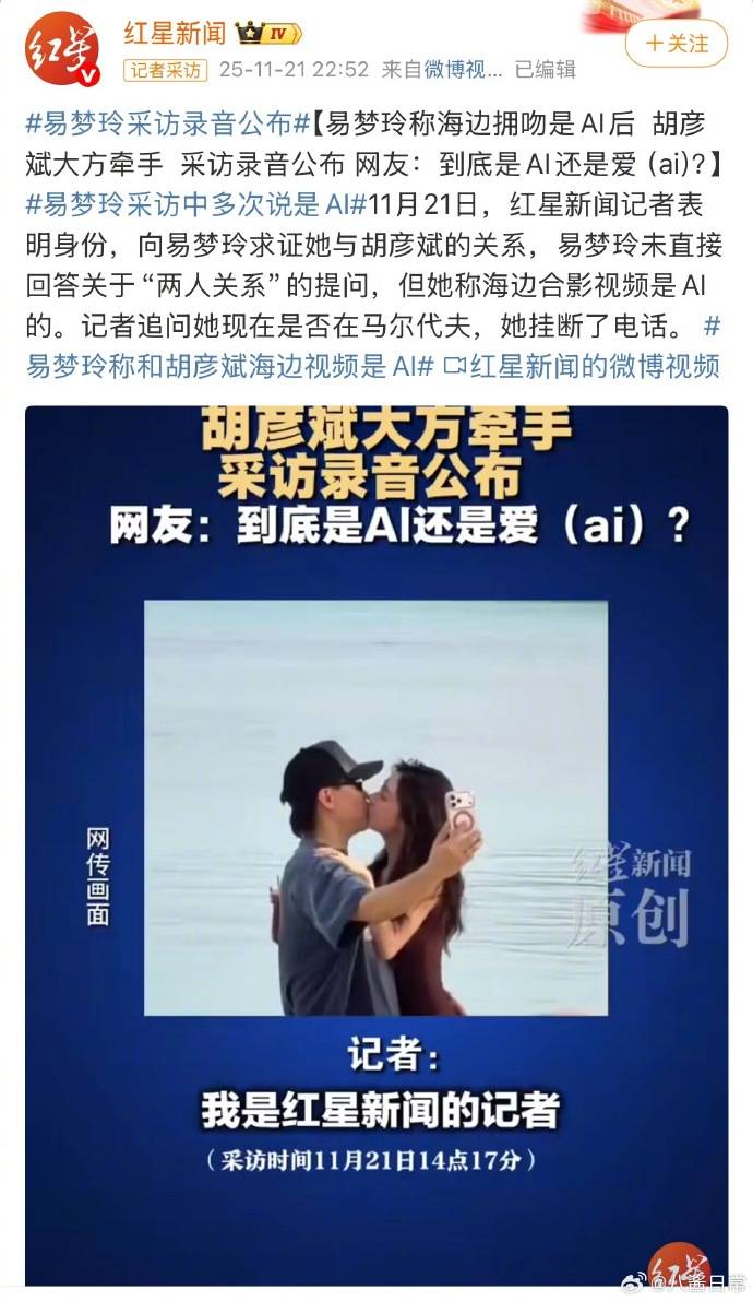 然而,这场恋情的后续发展,比偶像剧还跌宕起伏。次日,易梦玲本人亲自向媒体回应,笑着将视频定性为“是AI生成的”,并留下一句意味深长的“我也不知道怎么会这样”。对于恋情实质,她未置可否,却在被追问是否身在马尔代夫时,直接挂断了电话。