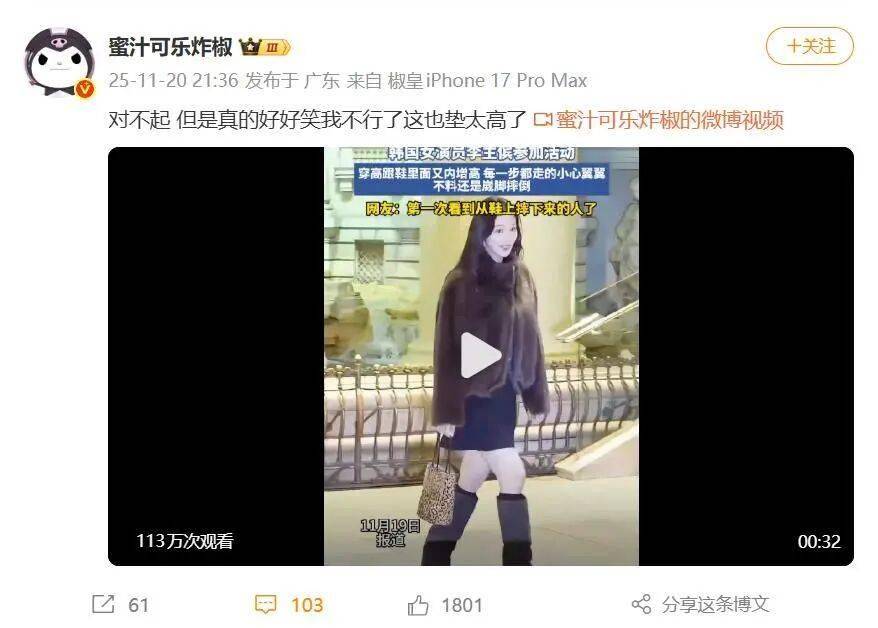 现场视频清晰地记录了这一意外瞬间。李主傧行走时,鞋跟部分明显晃动,最终导致她失去平衡。这双被网友目测超过10厘米、戏称为“恨天高”的鞋子,因其过于极端的内部垫高设计,成为了全场“焦点”。多位目击者事后表示,这是他们首次亲眼见到有人因鞋子本身的结构问题而跌倒,也因此催生了“第一次见从鞋上摔下来的”这一网络热梗。