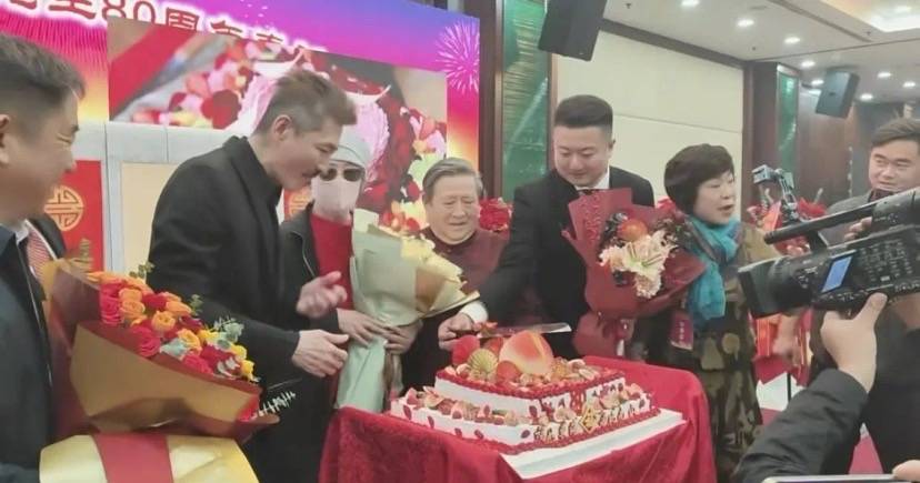 张志宽的80大寿,准备了大大的蛋糕、还有寿桃装饰。一家人切蛋糕的时候,张志宽的妻子也出镜了,只是过着口罩、戴着帽子,让人看不出模样。