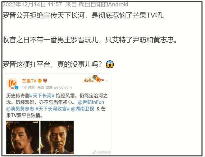网友认为罗晋身为有妇之夫,应该拒绝这样的拍摄。要知道罗晋想来很“刚”,此前因为不满《天下长河》的宣传方式便十分不满,还拒绝宣传。网友也不禁想问,既然当初能这么刚,为何却不拒绝和李一桐的宣传呢?