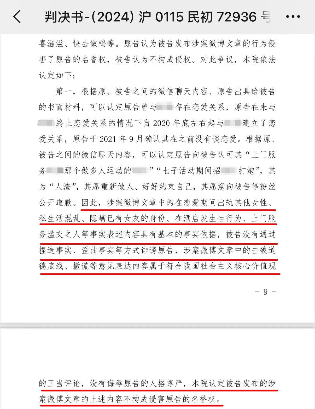 22日,丁泽仁否认“唯一的姐”为他发300万并要求对方道歉后,该粉丝在社交平台发布道歉声明并公开与丁泽仁判决书,判决书中提到:“涉案微博文章中的在恋爱期间出轨其他女性、私生活混乱、隐瞒已有女友的身份、在酒店发生性行为、上门服务滥交之人等事实表述内容具有基本的事实依据,被告没有通过捏造事实、歪曲事实等方式诽谤原告。”但如“舔狗”、“全裸出去都会喜滋滋”等没有基本的事实依据,并且相关词语有明显的人格贬义,侮辱了原告的人格尊严,法院认定被告构成侵害原告的名誉权,被告被判公开道歉及赔偿精神损害抚慰金2万元。