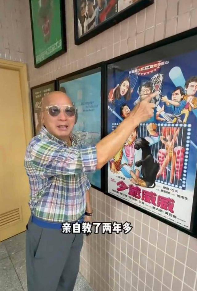 在戏院墙上一幅幅的旧海报,就勾起了刘家荣当年的一些回忆,他指着自己的得意作品,谭咏麟主演的《少爷威威》这张海报。