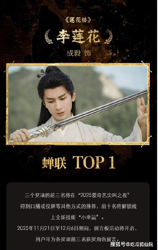 成毅饰演的李莲花登顶2025长青角色,不仅是对他个人演技的高度认可,更是为影视行业树立了一个成功塑造角色的典范。期待未来,成毅能继续带来更多精彩的角色,书写属于他的演艺传奇。