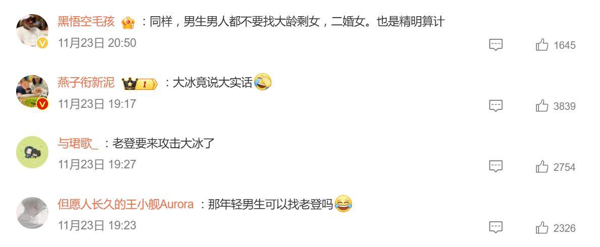 说到底,大冰这场“拒老登”的言论,不只关乎婚恋选择,更戳中了年轻一代对平等关系、自我成长的深层焦虑。当“算计”遇上“真心”,是该冒险赌概率,还是稳扎稳打共同成长?每个女生或许都该问问自己:我准备好应对这场不对等的博弈了吗?