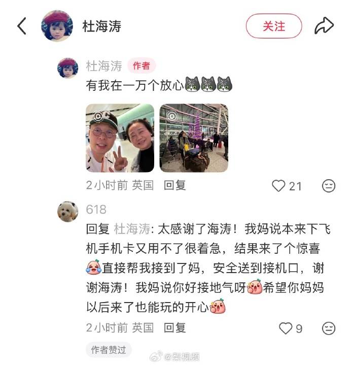 不料,落地后状况突发。网友的妈妈因无法激活英国手机卡,彻底与女儿失联。就在网友焦急万分时,转机出现了——杜海涛本人竟然回复了:“有我在一万个放心。” 这句简单的承诺,瞬间安抚了屏幕后焦灼的心。