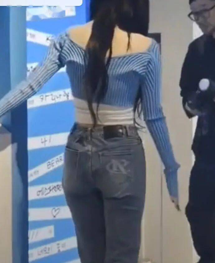 这场争议源于Karina代言的Krush啤酒快闪活动。在签名环节的侧拍视频中,她身穿紧身牛仔裤,后腰至臀部的布料呈现异常凸起。部分网友坚称这是使用“臀垫”的痕迹——一种无需手术即可塑造饱满曲线的塑形工具,在娱乐圈中早已不是秘密。有人调侃“连AI身材都要卷”,也有人讽刺“偶像行业对身材的执着已病态”。