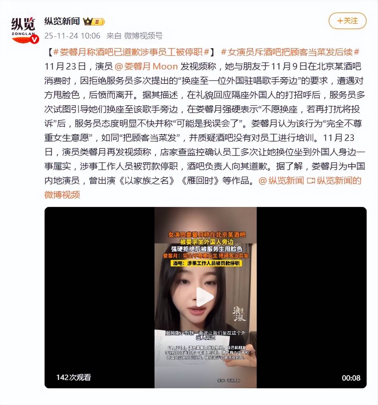 从“礼貌回应”到“强硬拒绝”,再到最终的“愤然离场”,娄馨月的经历完整展现了一位消费者在感到不被尊重时的全部心理路径。酒吧的快速处罚与道歉,是危机公关的必然一步,但能否真正堵上服务理念的漏洞,才是接下来最值得关注的看点。