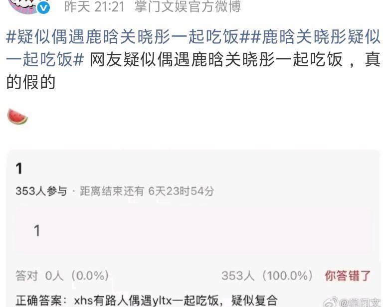 就在网友对关晓彤嘲翻天的时候,网上突然出现一个爆料,有瓜主称前几天偶遇关晓彤,鹿晗在北京聚餐,这消息很快被各大媒体带话题转发了。