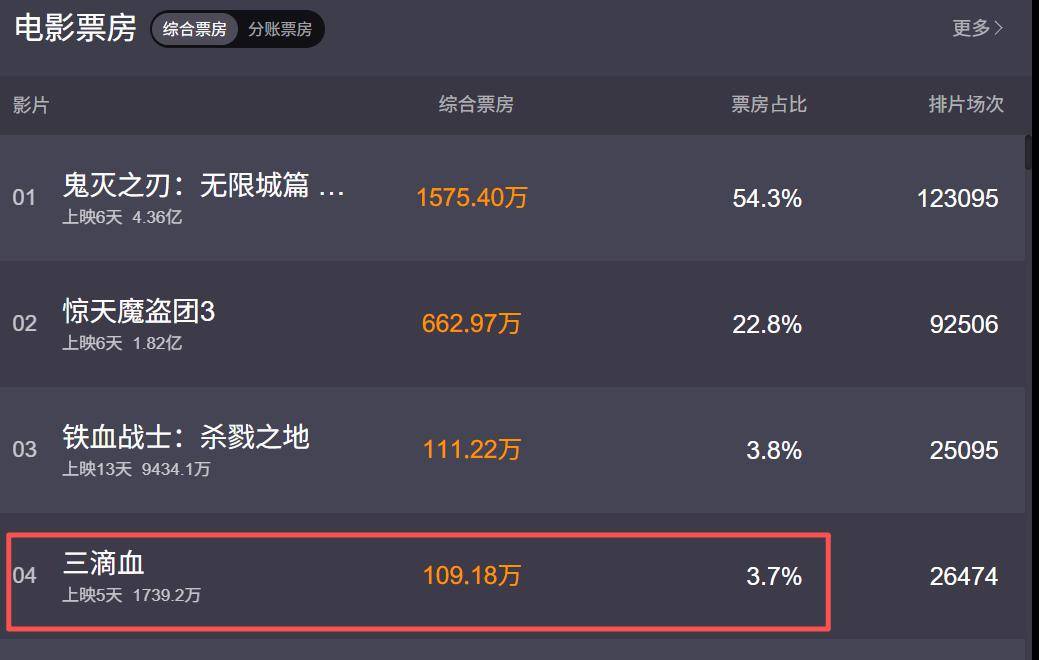 胡歌新电影《三滴血》上映后,票房一片低迷,现在总票房都还没有突破2000万,跟他本人的名气似乎并不太匹配。胡歌努力辗转各地去路演,劝观众看电影,但最后仍然没有拉动票房。还招