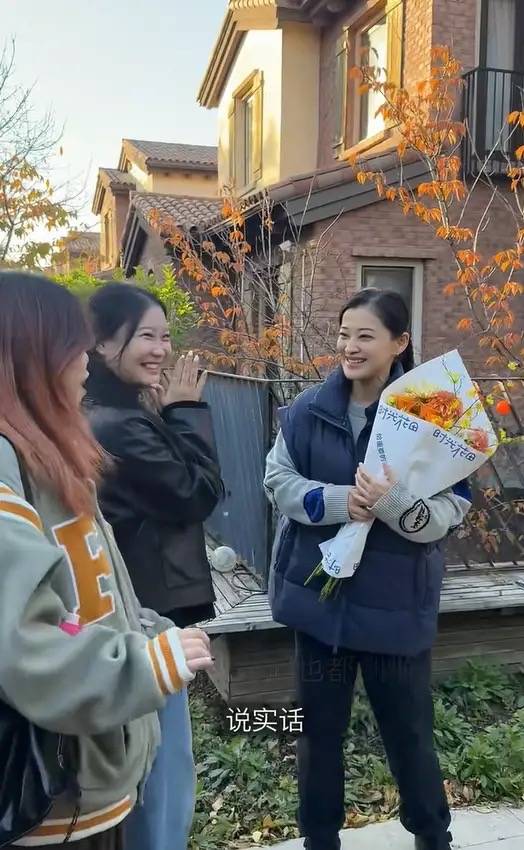 梅婷的婆婆烫了头发,穿着枣红色外套,整个人看着很富态、也很慈祥。两位老人一看就很好相处,难怪梅婷愿意和公婆同住。