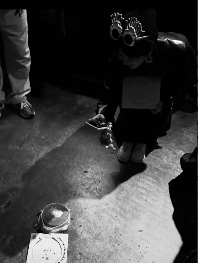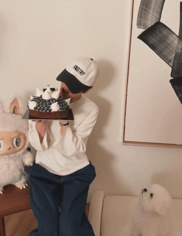 浓眉大眼,肌白如雪形容的就是她了,穿着简单的卫衣还戴了一个豹纹头巾依然是美的让人挪不开眼,一个朋友送一个蛋糕,所以多到数不清也吃不完了,只不过在拍照的时候还不小心打翻了一个蛋糕,但依旧吃的很开心,这就足够了。
