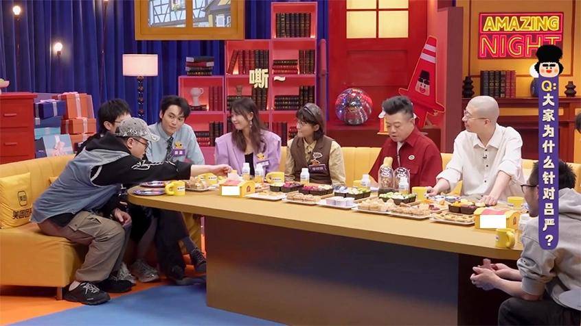在第九期的后半段的时候,突然出现一个纯粹是聚餐的环节,几位可爱的人坐在那儿吃蛋糕、做游戏,聊聊台前幕后的事情。