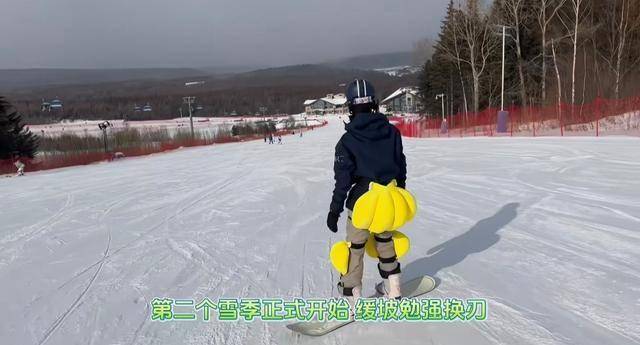 不过,看他这身造型,看起来像是新手呢。而据网友透露,他滑的是单板,有教练在教,但他滑得很好。