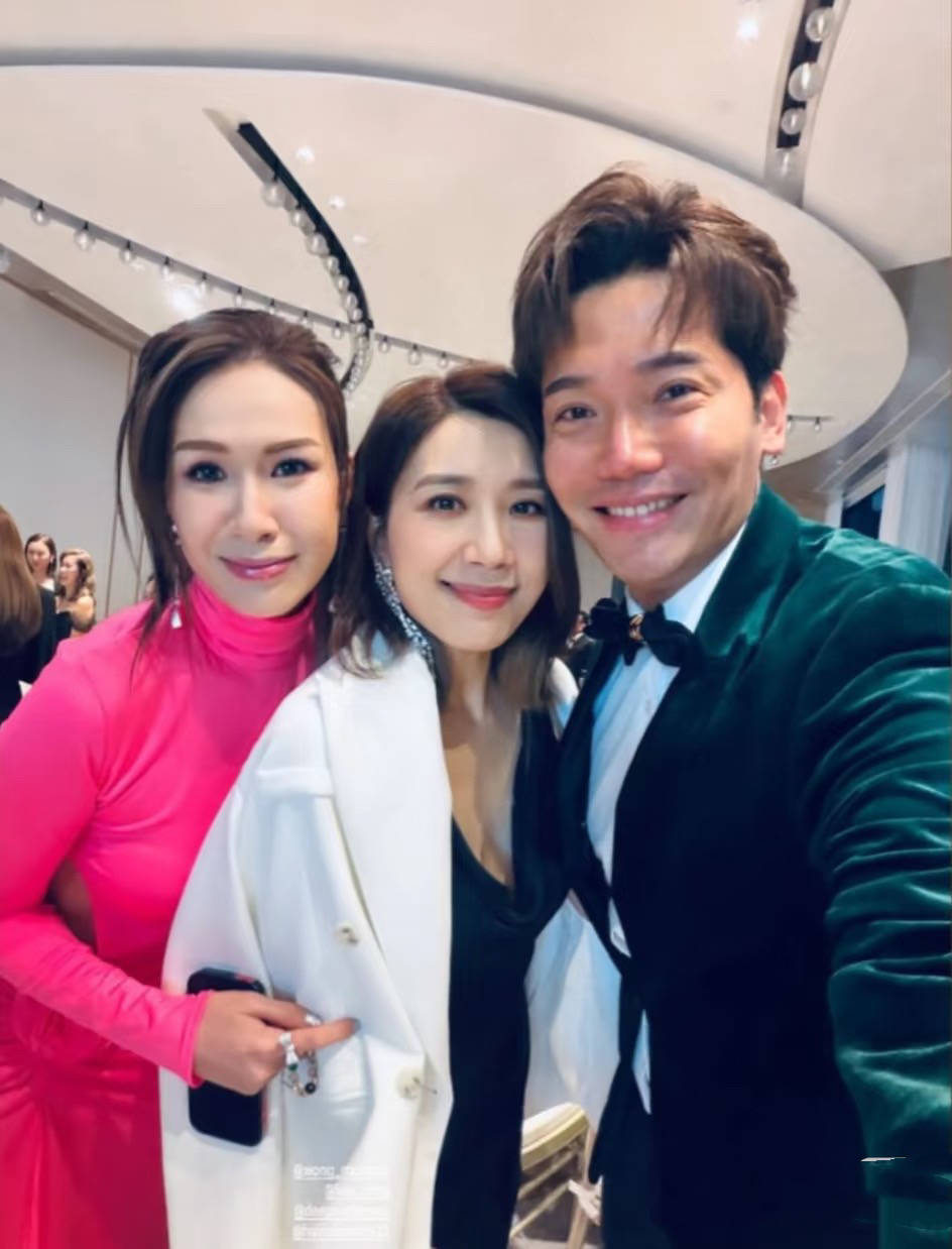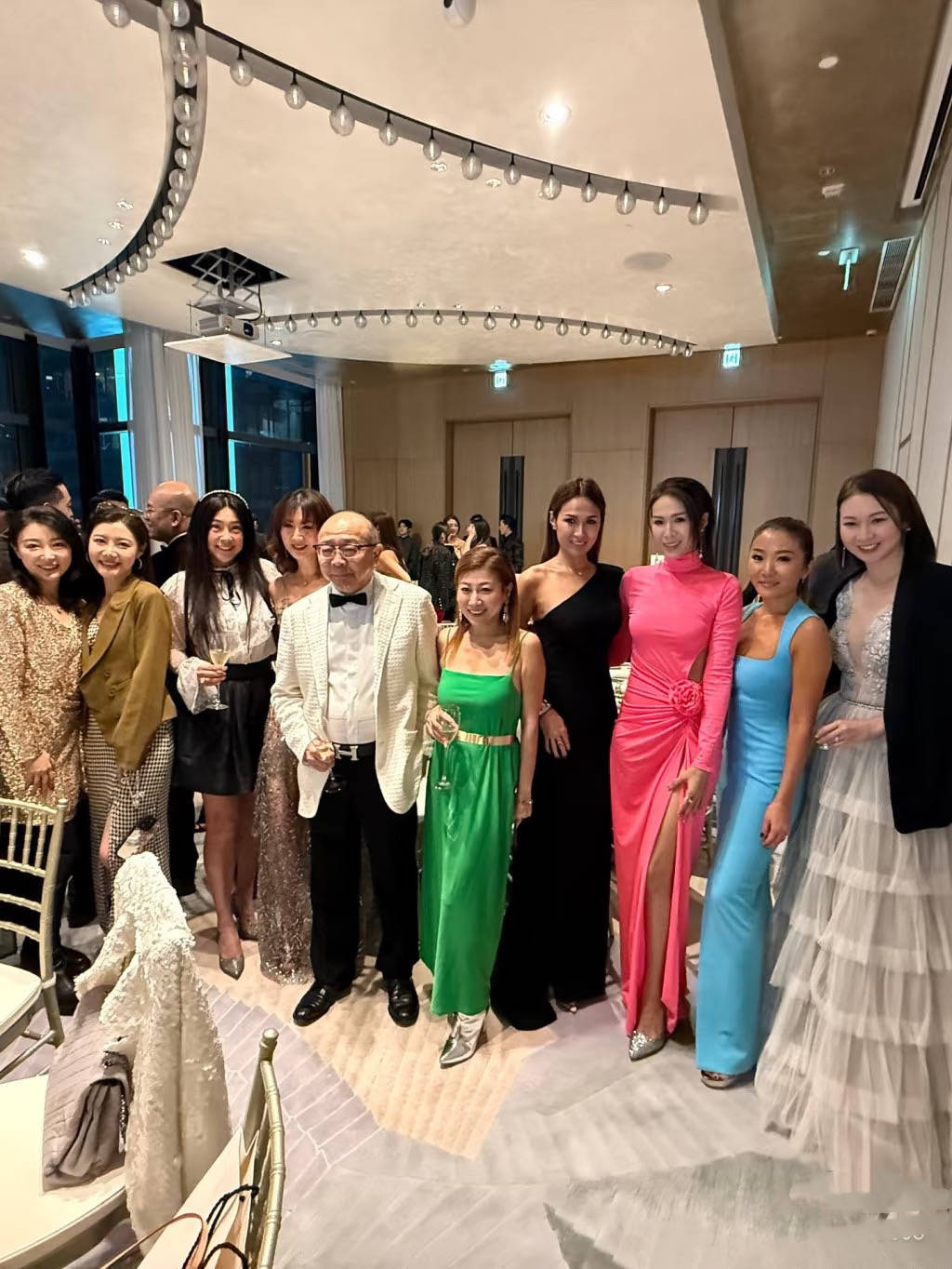 当天到场的宾客,也都是盛装出席。不少都是圈内人,大家穿着时髦的礼服。尤其是庄思敏穿了一条粉红芭比的开衩长裙,那一米八的大长腿太傲人了。