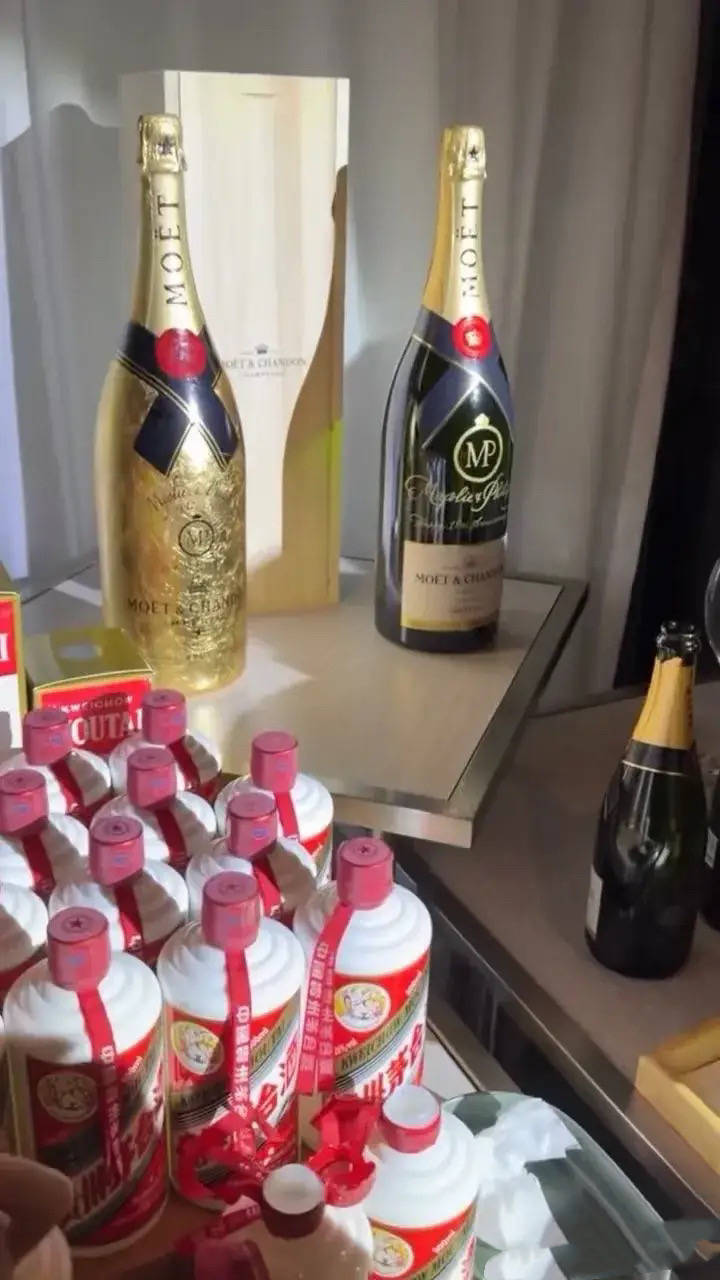主人家的安排也很到位,不仅有上百瓶茅台酒、还准备了香槟、红酒,一起庆祝。李乘德经营夜店生意、胡杏儿是一名老演员,来年更感人经济实力雄厚。