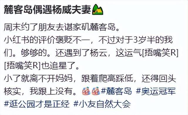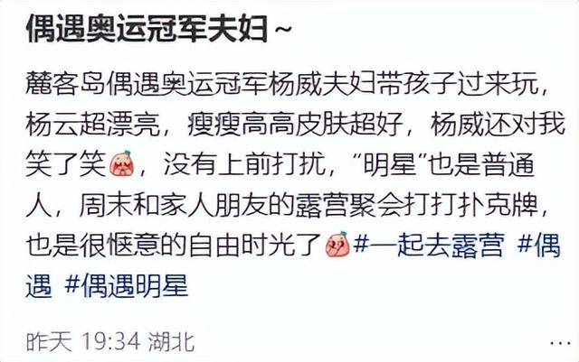 杨威一家的生活真是越来越滋润了,近日还有网友在武汉麓客岛偶遇他们一家在露营。