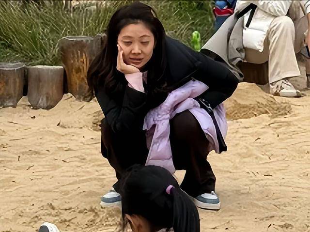 杨云穿的更接地气,黑色紧身裤配短款羽绒服,又瘦又高,完全看不出是三个孩子的妈,不过她面黄唇白气色似乎有点差。
