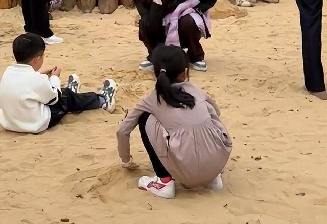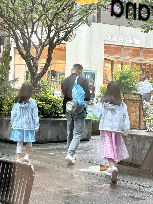 杨威全程都在照顾女儿,又是给她们剥橘子又是陪她们玩飞盘,一点冠军架子都没有。