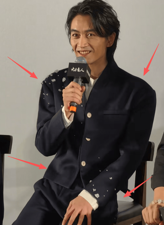 看得出陈晓的外套并不合身,他有意拉宽肩线,可惜效果并不好,坐在那里都有种头大身小的感觉。