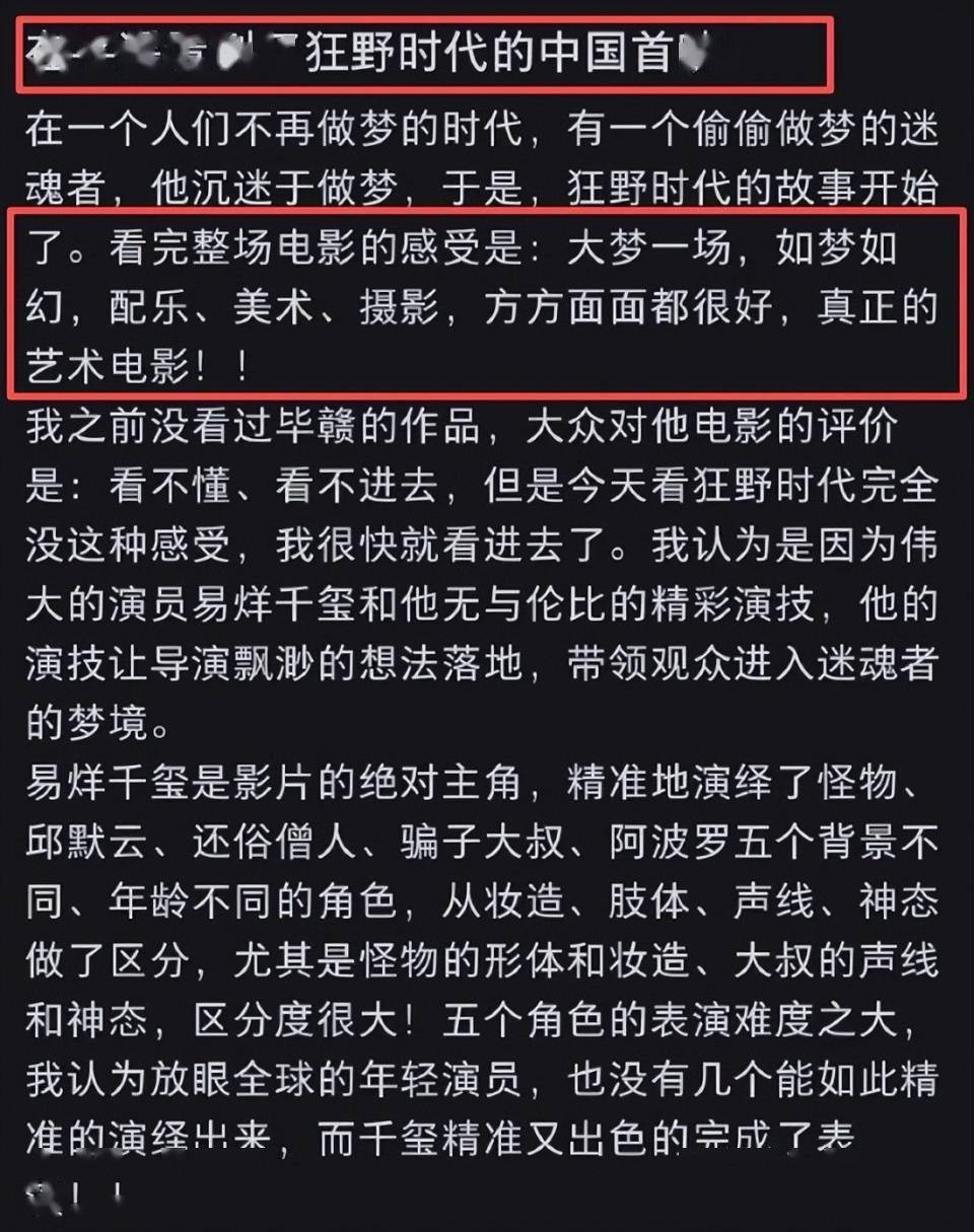 当下最火爆的电影,非《狂野时代》莫属。作为一部文艺片,竟然能在热度与票房上两手抓,看来毕赣导演还真是挖到宝了。当然,这部影片的口碑争议,也是可以预见的。了解毕赣导演风格