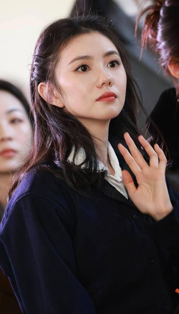 更绝的是她的发型,今年超火的 "龙须刘海配低马尾",两绺碎发刚好挡着颧骨,显得脸比旁边刘浩存还小一圈。
