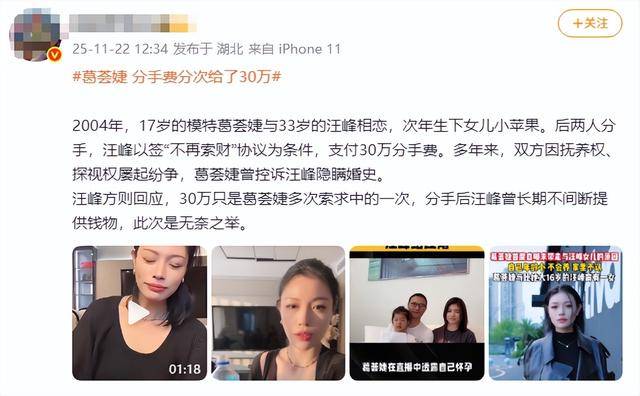 本以为看在葛荃婕是他长女生母的份上,汪峰的分手补偿不会低,结果总共才30万。