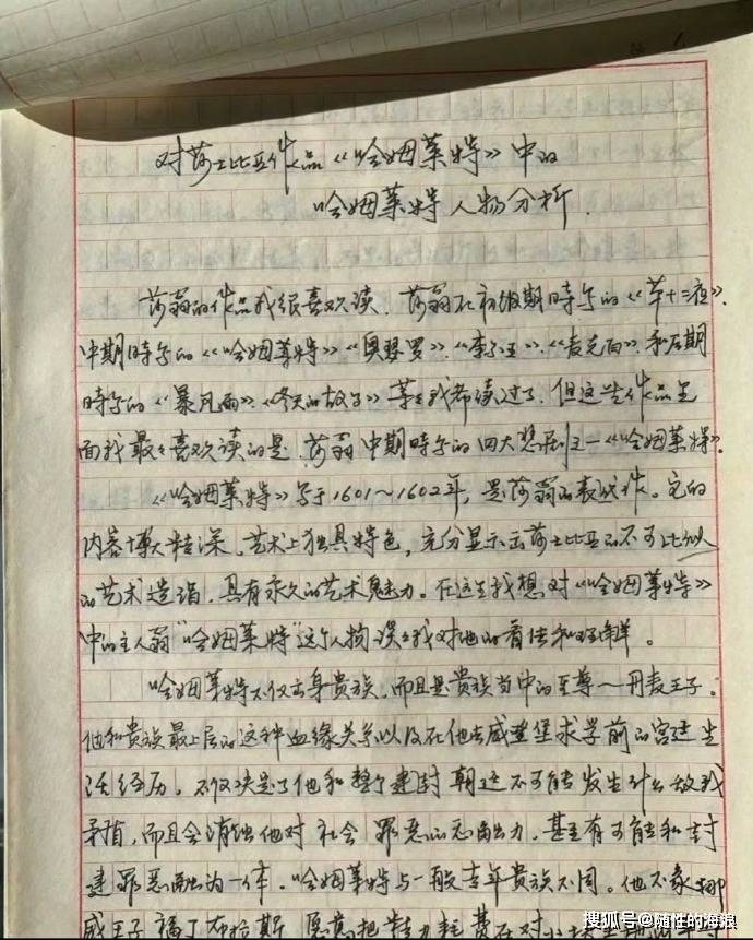 天刷到巩俐上学时期写的《哈姆雷特》影评,真是意外惊艳!她的字迹如同她的演技,既大气又工整,每个字都清晰可辨,透着一种沉稳的力量感。仿佛隔着纸页,都能感受到她那种内敛与洒脱的气场,让人由衷心生好感。