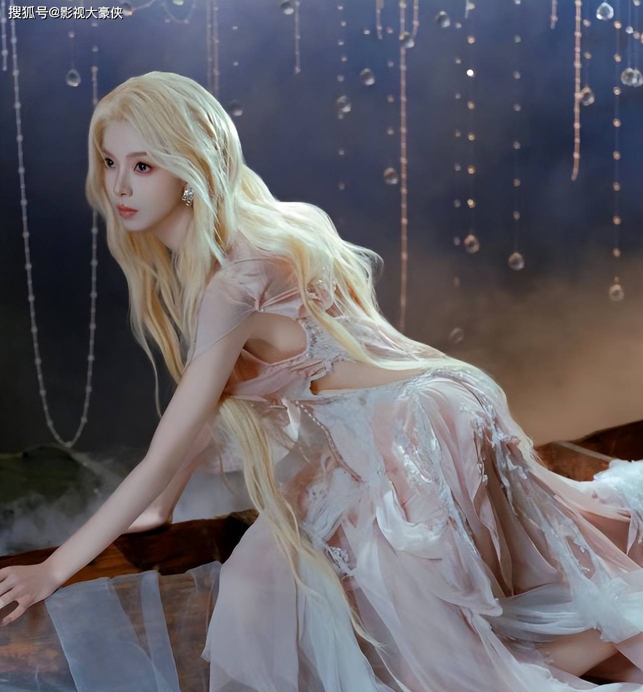 染着金色秀发、身着粉白纱裙的陈瑶,在柔和灯光的映照下,仿佛周身散发着璀璨光芒。她宛如童话中走出的人鱼公主,梦幻而迷人,令人心醉神迷。