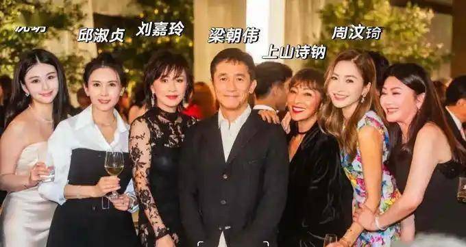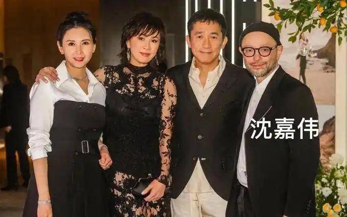 梁家辉登台致辞祝“四代同堂”,妻子江嘉年瘦成闪电,关之琳黑丝绒遮不住法令纹。