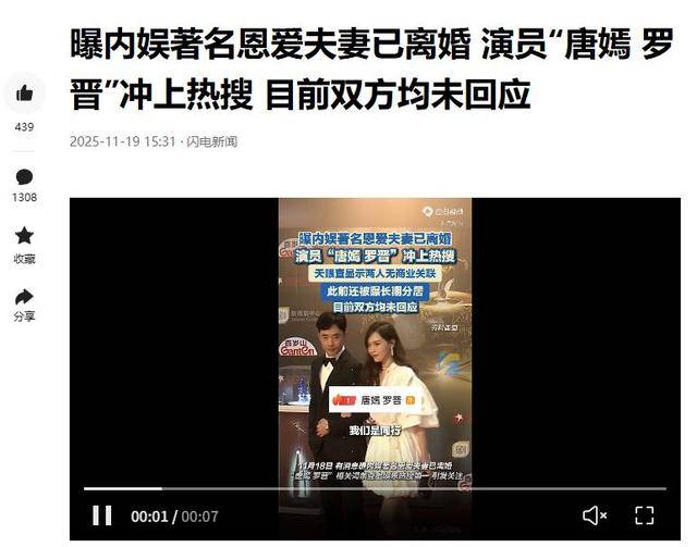 11月18日,“内娱著名恩爱夫妻已离婚”的词条突然空降热搜,没指名道姓,却让网友瞬间锁定了唐嫣和罗晋。