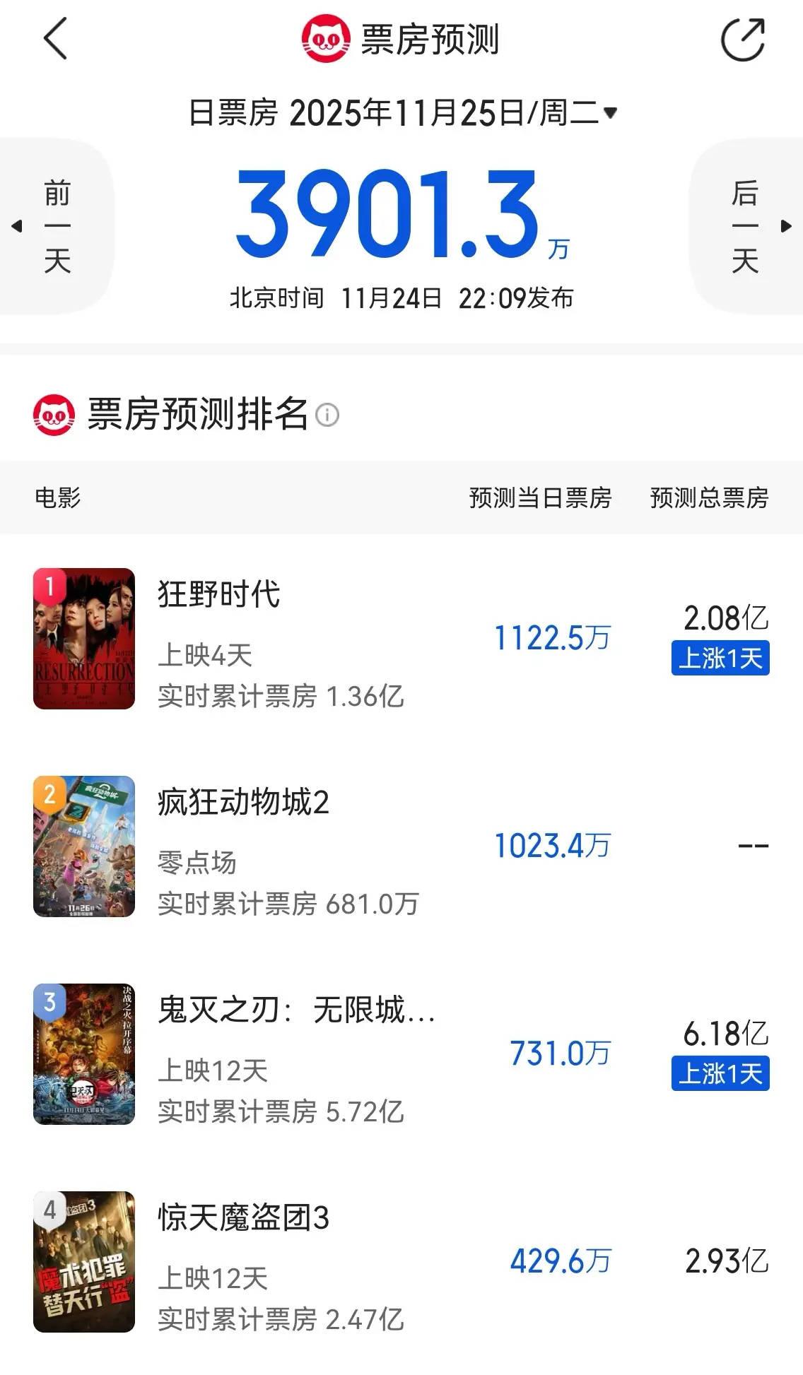 (来源:澎湃新闻)11月24日,易烊千玺、舒淇新片《狂野时代》因退票率高再引热议。据猫眼专业版,该片上映前三日票房分别为7949.78万元、3709.53万元、1269.32万元。截至11月25日8